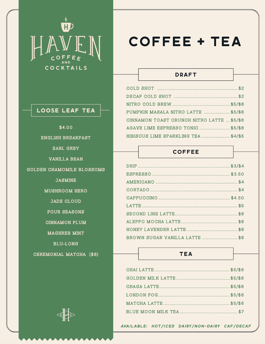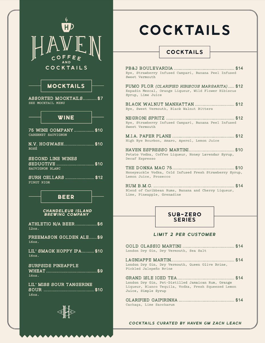 Introducing Haven Coffee and Cocktails, a unique establishment nestled in the heart of Covington, LA, at 534 N New Hampshire St. This inviting venue has swiftly become a local favorite, offering more than just exceptional coffee; it serves a delightful fusion of cocktails and comfort food in a relaxed atmosphere.